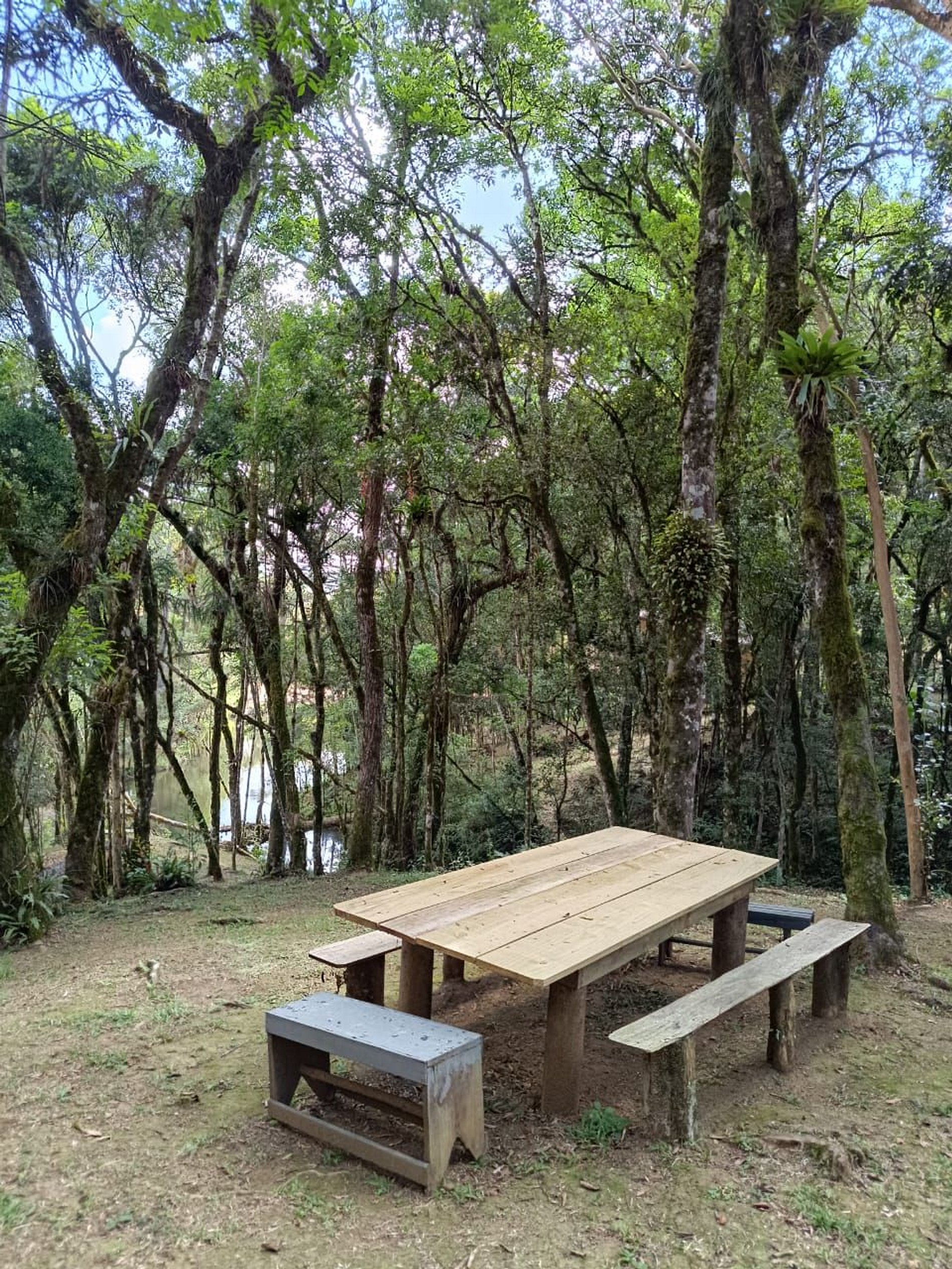 Área de lazer e descanso. Trilhas, pesca, redes, balanços, lareiras ao ar livre, espaço com mesa e bancos a beira do lago.