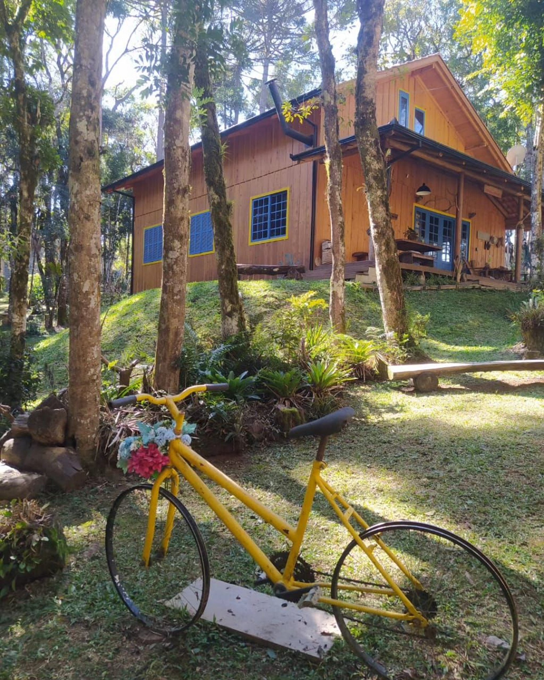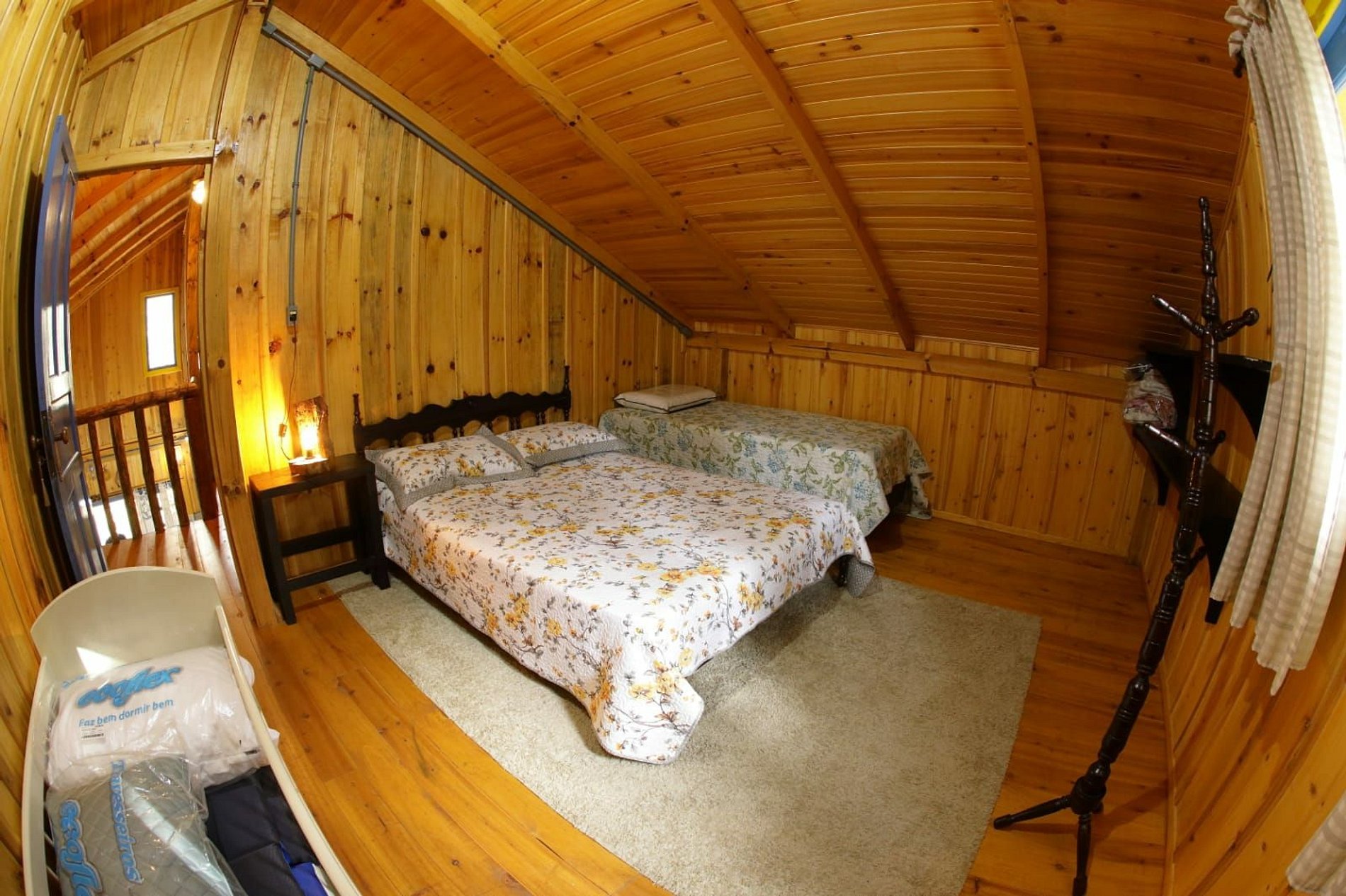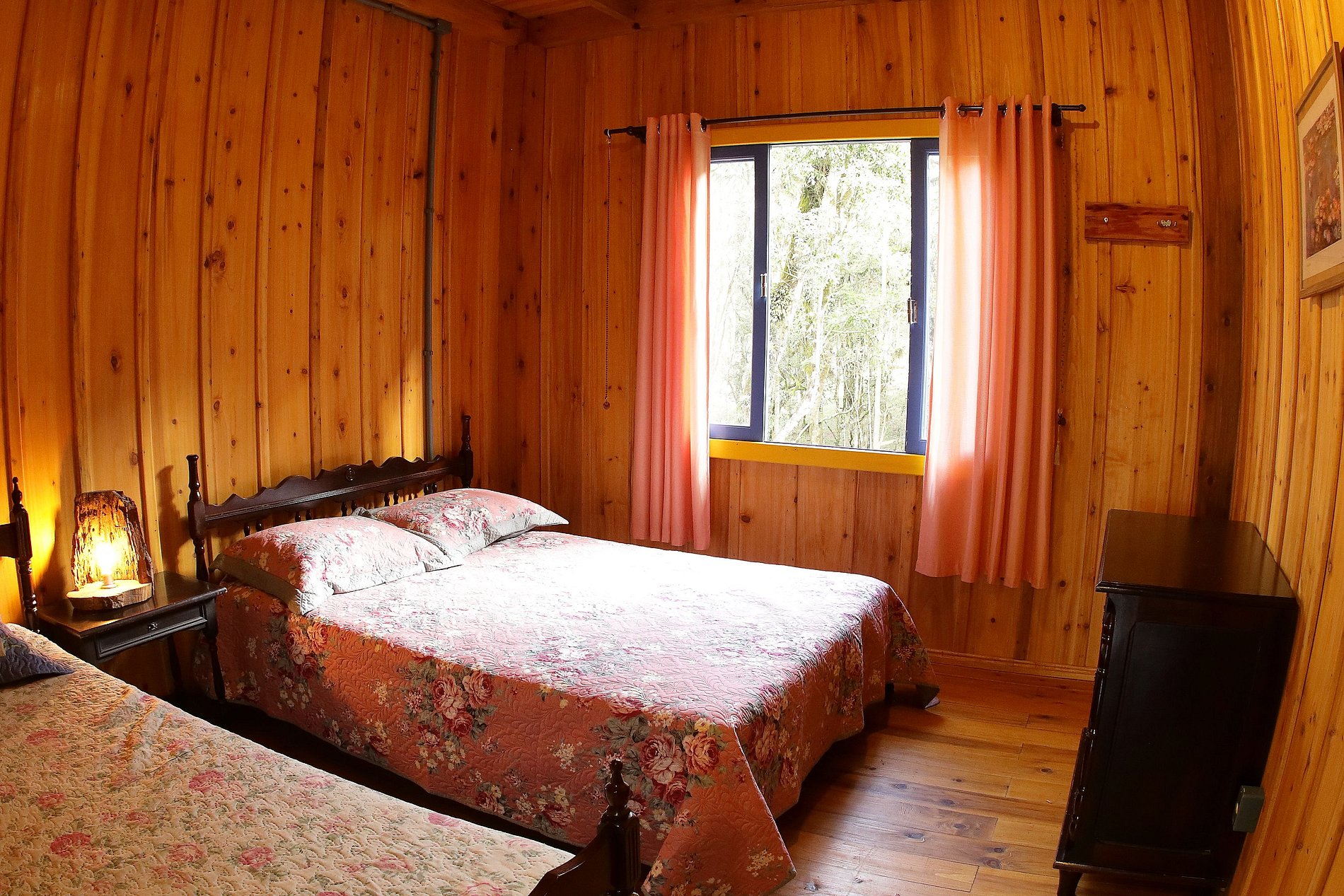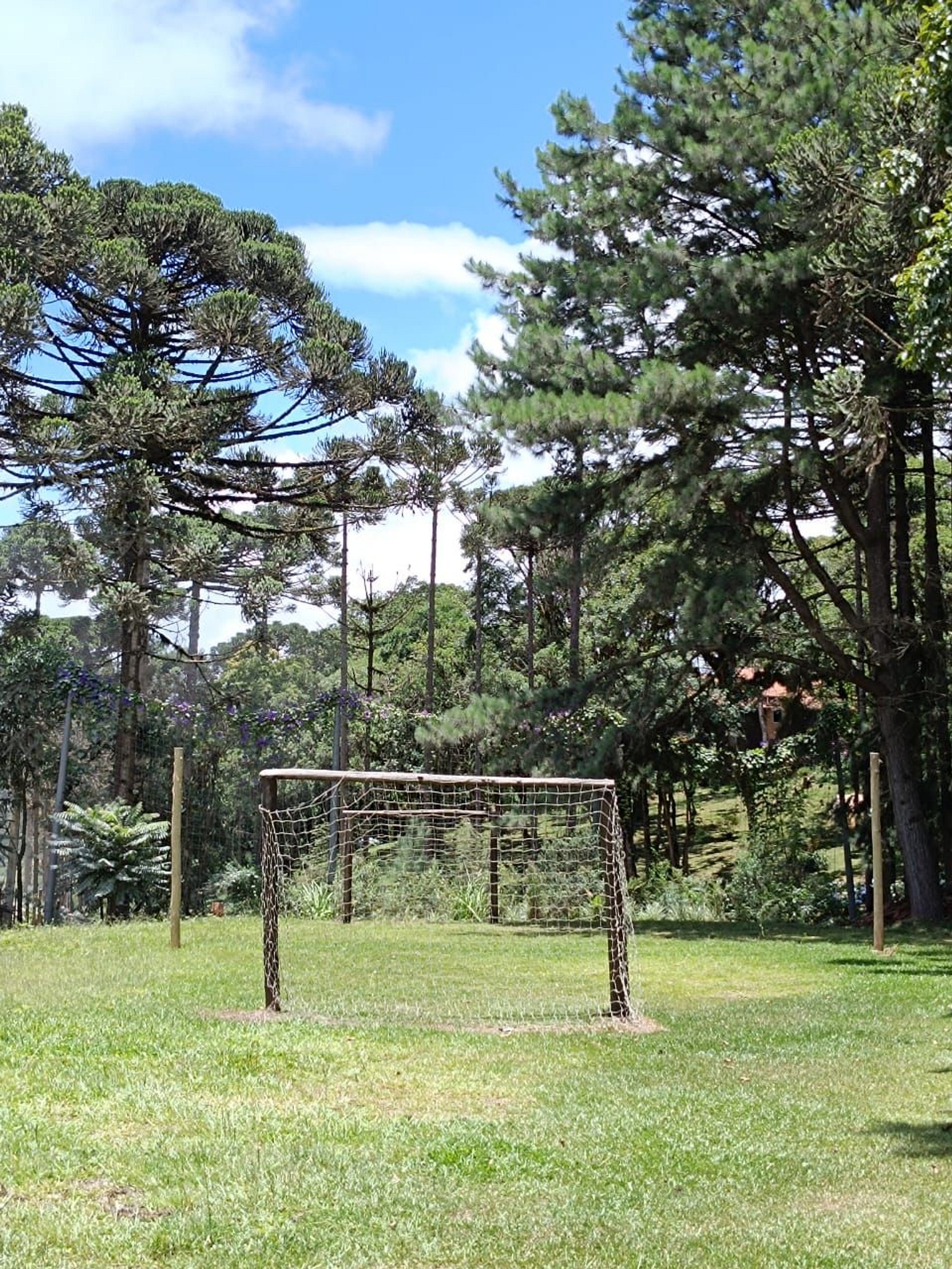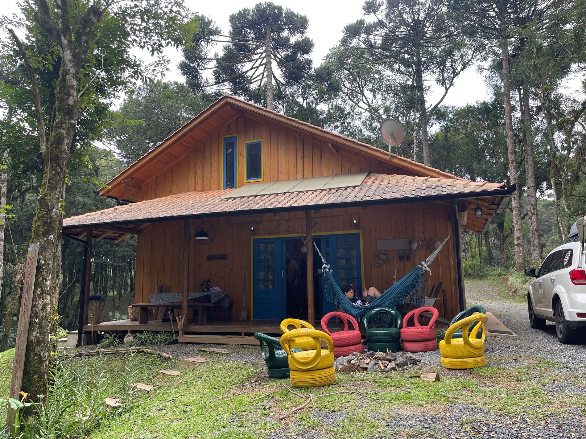 Dois quartos e amplo mesanino. SPA privativo com banheira de hidromassagem. Cozinha completa com churrasqueira e fogão a lenha. Lareira interna e externa. Banheiro completo com ducha a gás e 2 lavabos. Vegetação nativa, araucárias, flora e fauna preservadas. Pomar, balanços, redes, pula-pula, churrasqueira, mesas, áreas para piquenique. Tanque de pesca, pedalinho, bancos, trilhas, casinha na árvore, campinho. Mirante com linda vista para o por do sol.