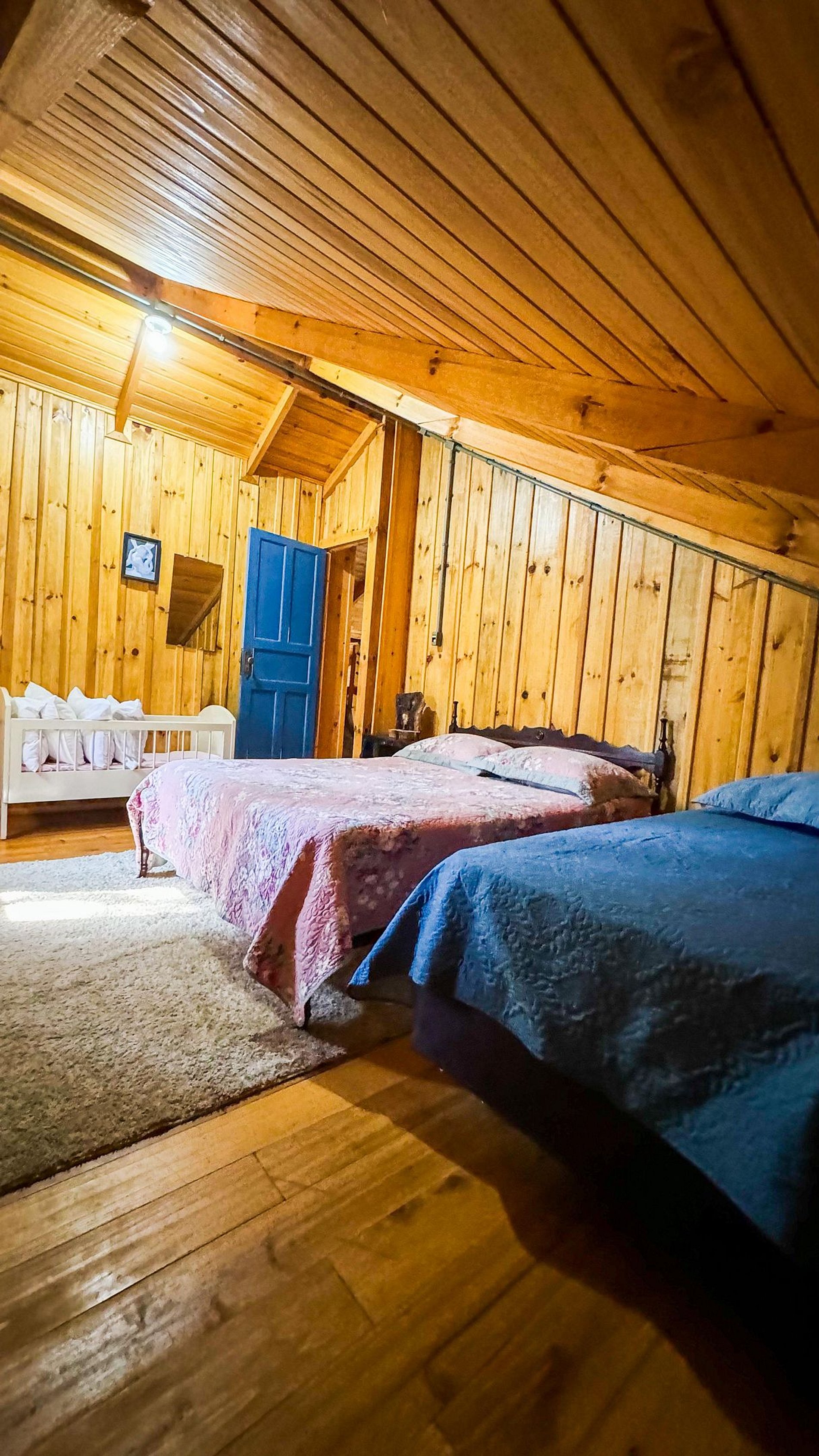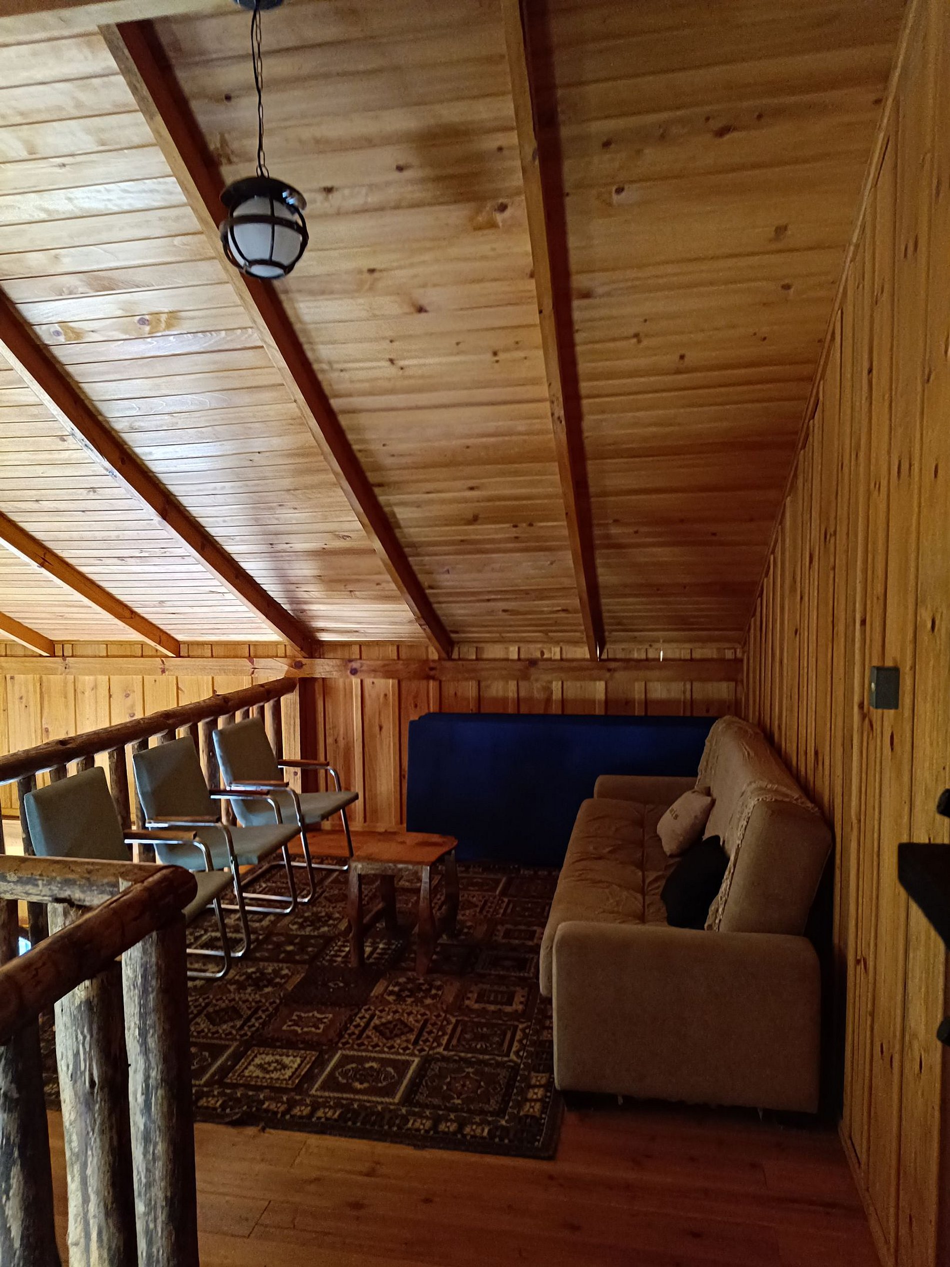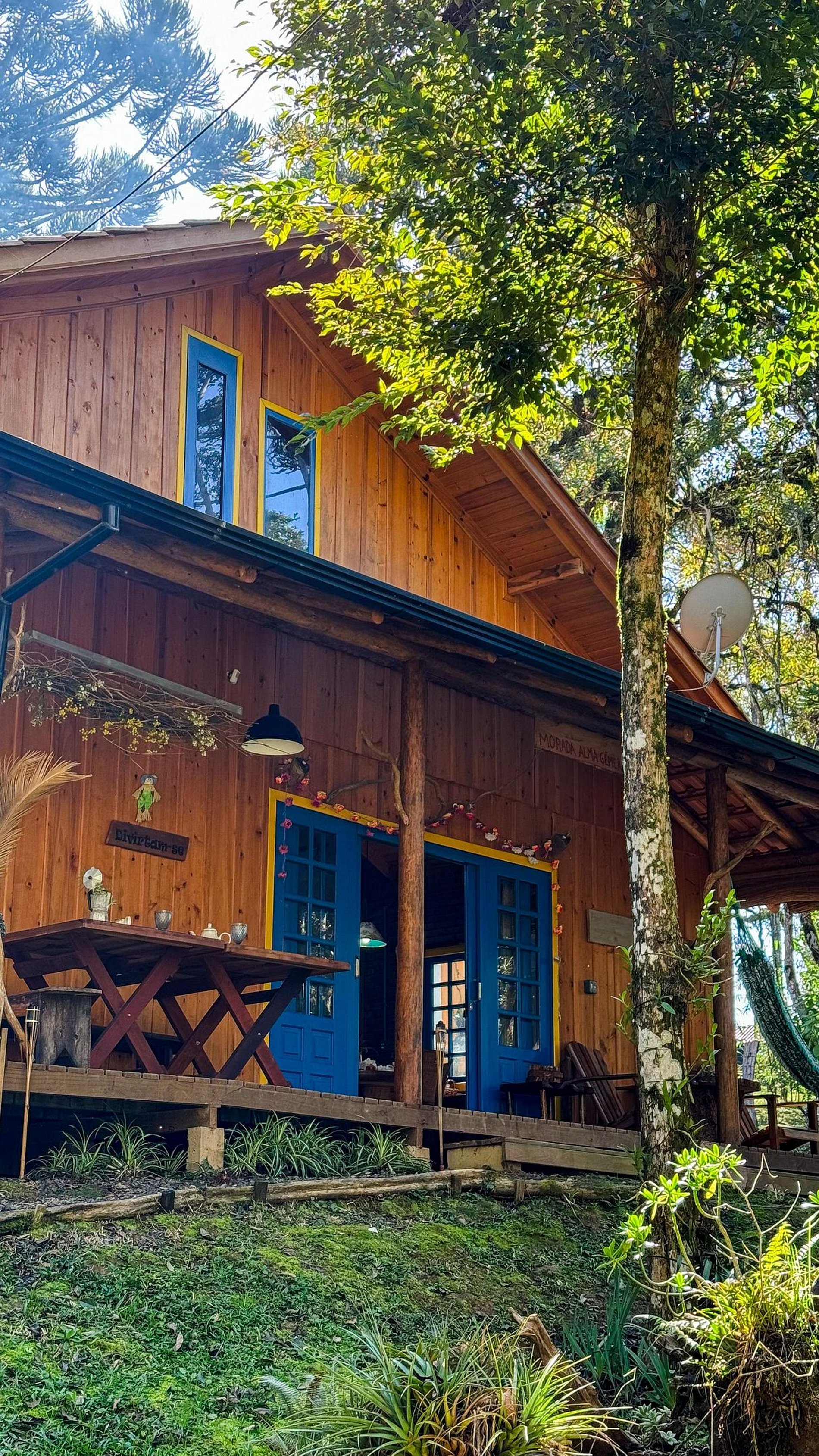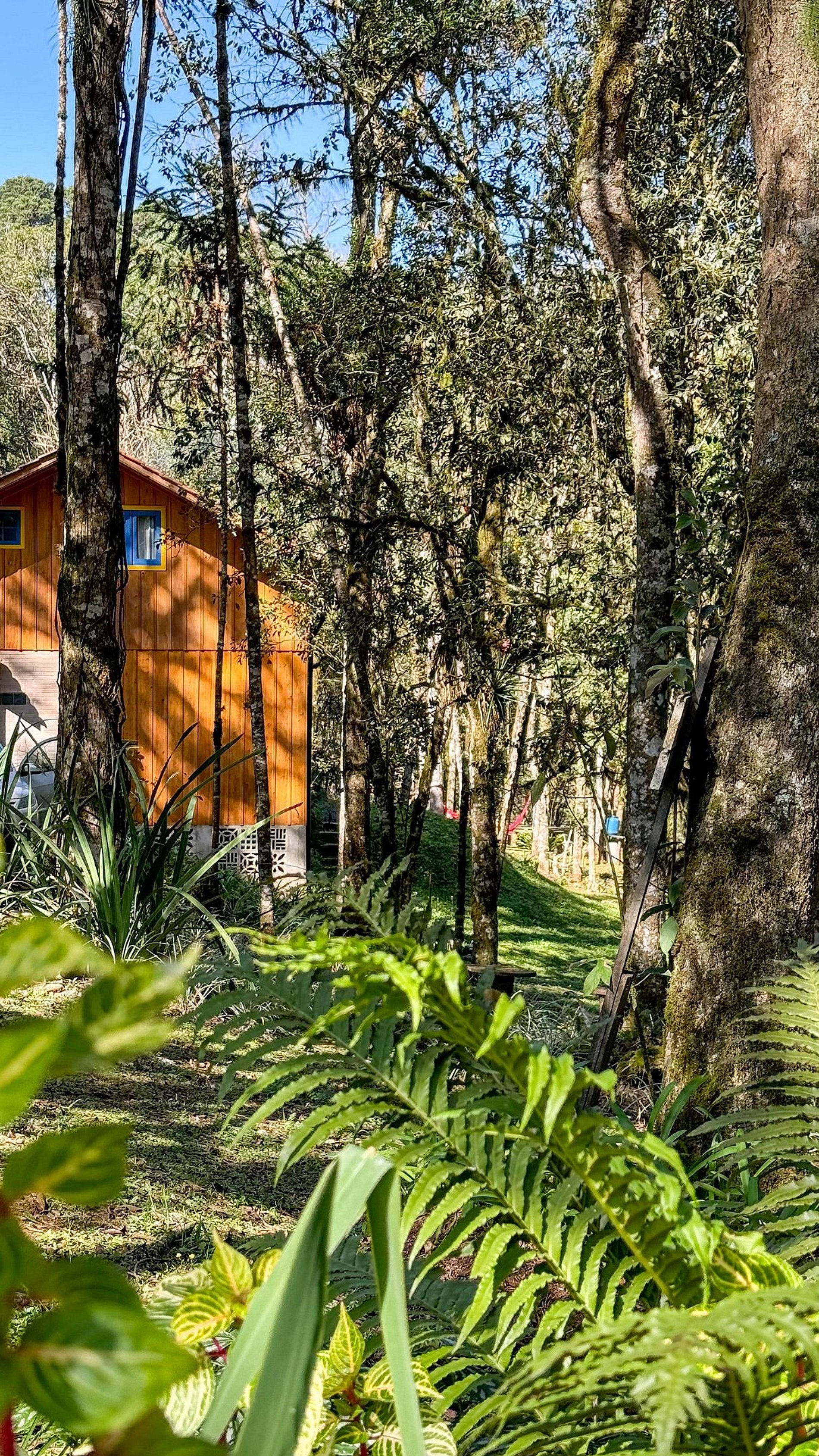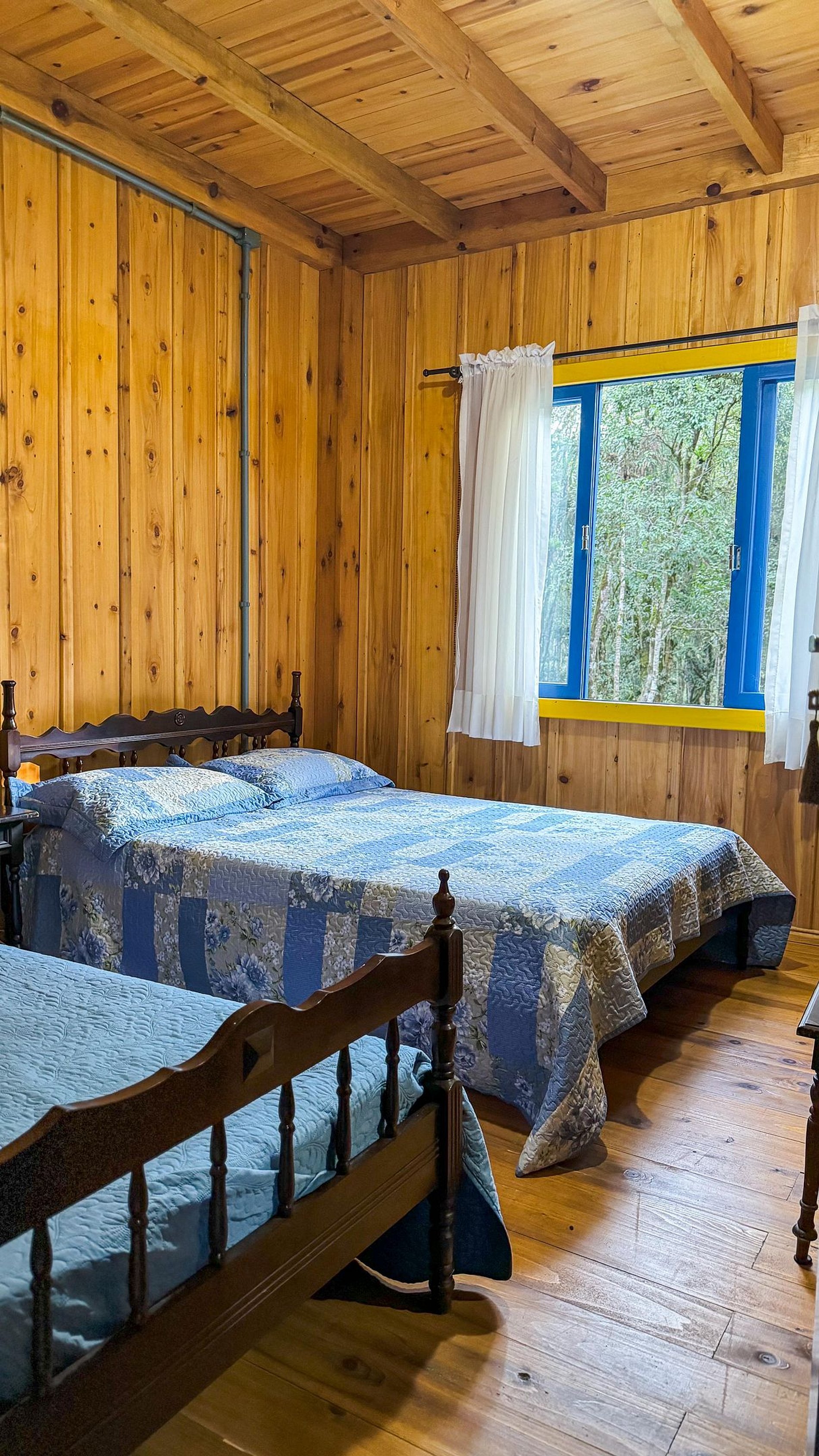 Dois quartos e amplo mesanino. SPA privativo com banheira de hidromassagem. Cozinha completa com churrasqueira e fogão a lenha. Lareira interna e externa. Banheiro completo com ducha a gás e 2 lavabos. Vegetação nativa, araucárias, flora e fauna preservadas. Pomar, balanços, redes, pula-pula, churrasqueira, mesas, áreas para piquenique. Tanque de pesca, pedalinho, bancos, trilhas, casinha na árvore, campinho. Mirante com linda vista para o por do sol.