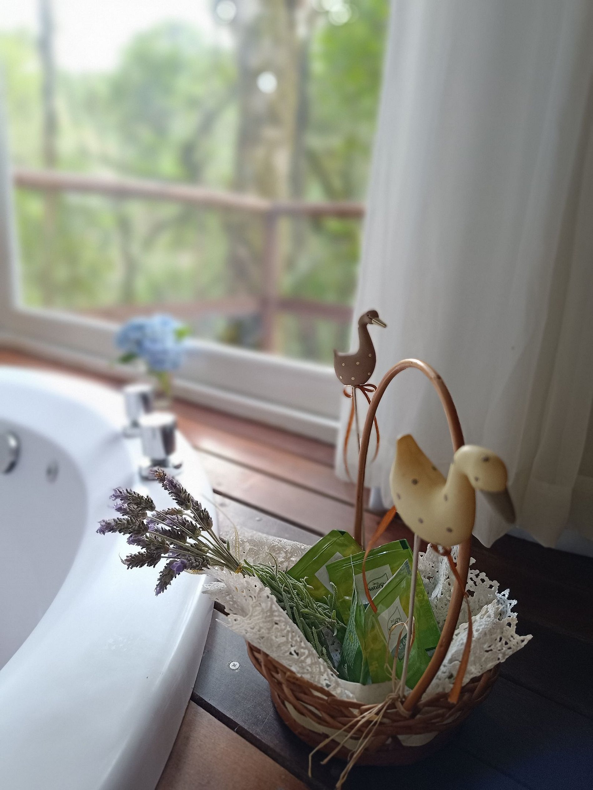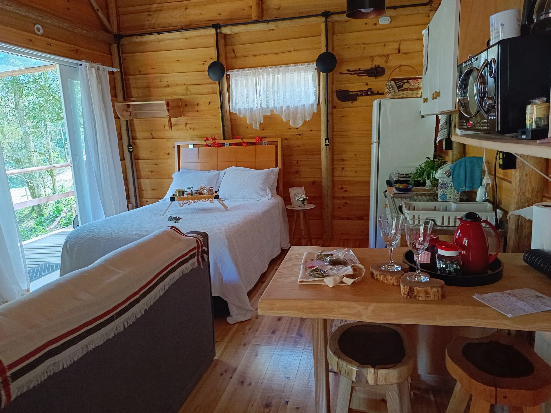 Relaxe neste espaço calmo e cheio de estilo. Cabana confortável no meio do mato, com amplas janelas e varandas. Viva a sensação de estar numa casa na árvore. Planejada para se viver momentos únicos de conexão com a natureza. Você pode caminhar nas trilhas, pescar, andar no pedalinho, curtir o pôr do sol no Mirante da propriedade, fazer um piquenique no déque sobre lago ou simplesmente relaxar imerso na banheira de hidromassagem, na varanda, na cama ou no sofá, se aquecendo nas lareiras. Roupas de cama e banho podem ser solicitadas no ato da reserva, acrescida de taxa extra.