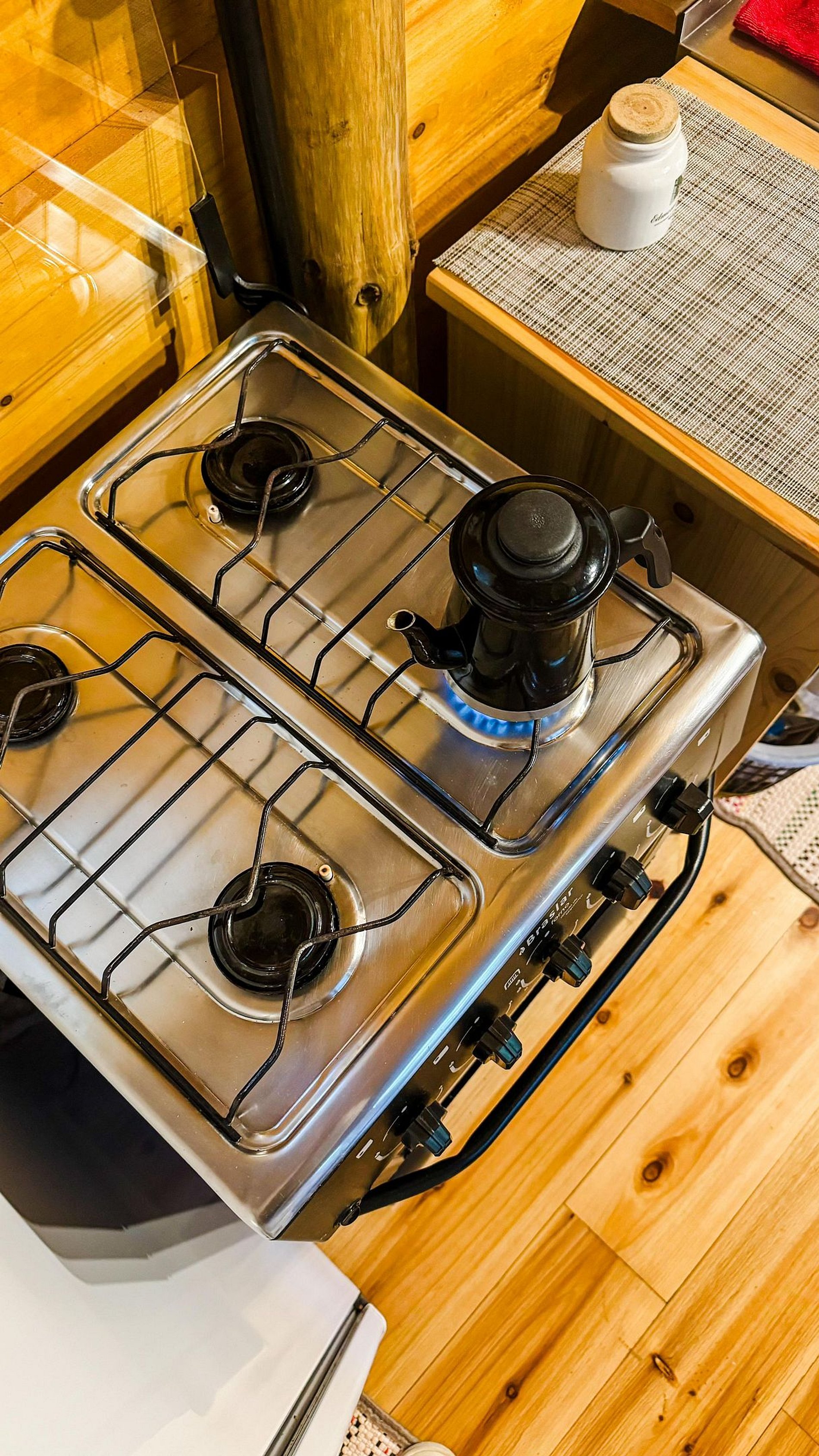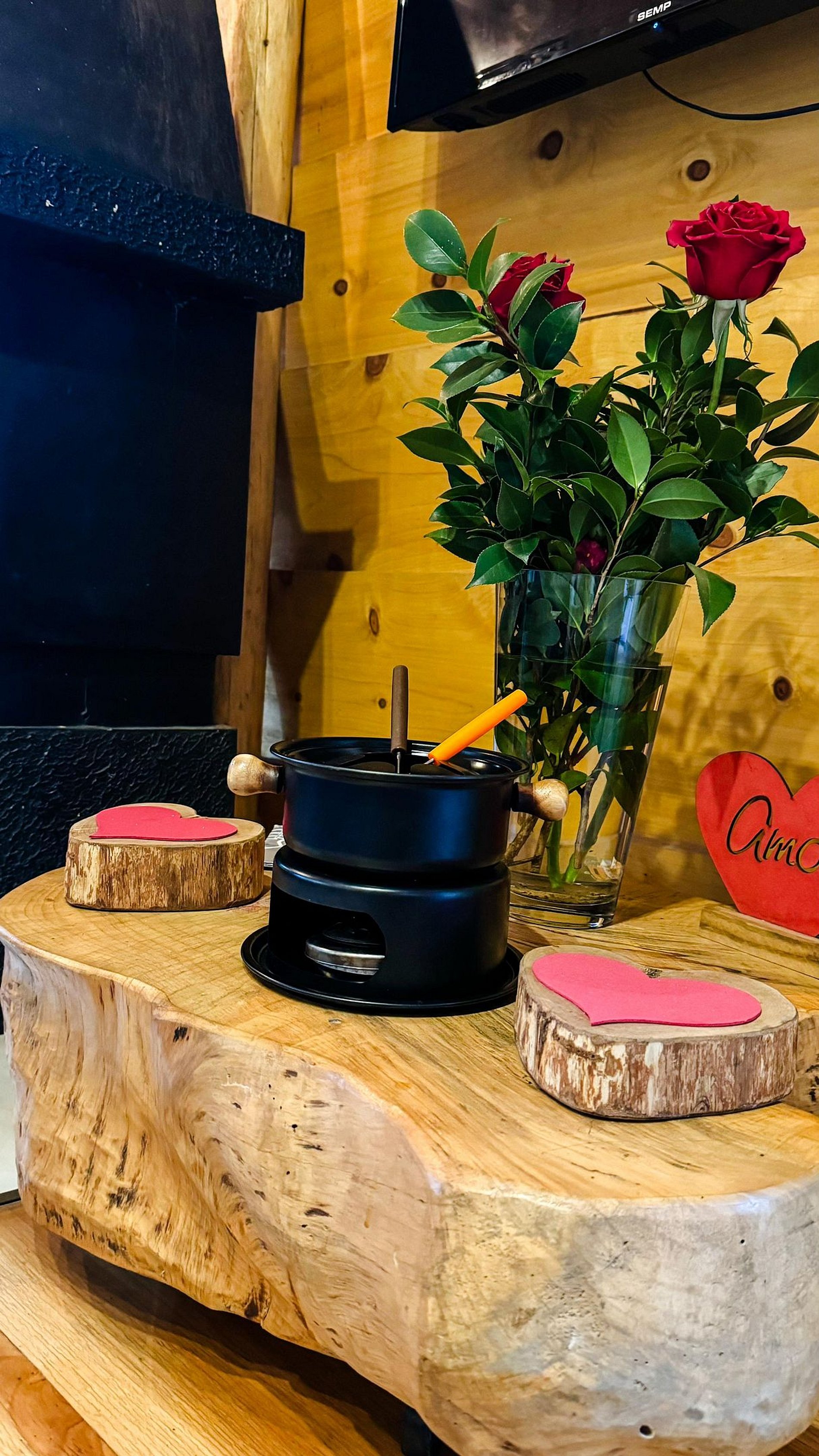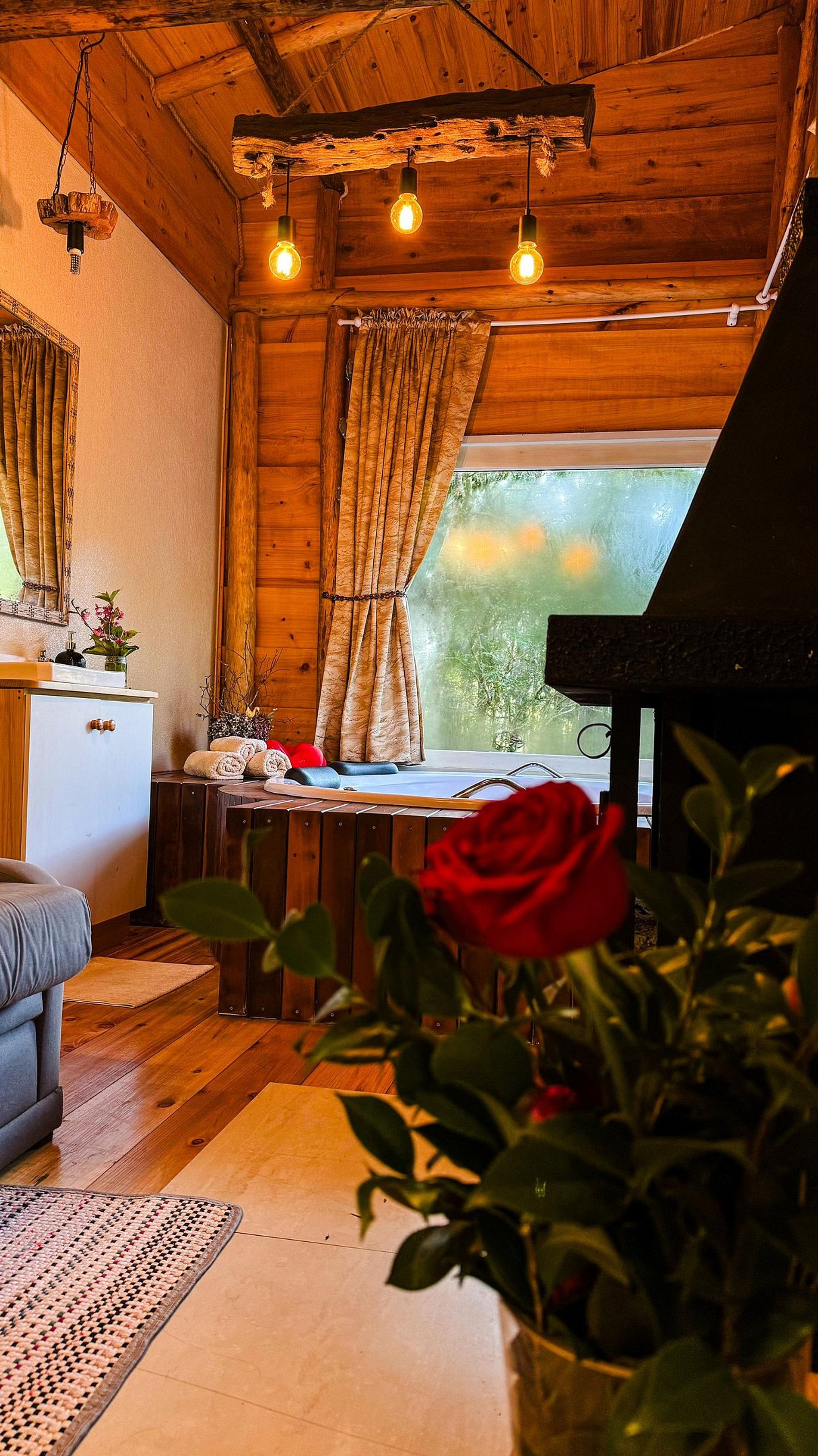 A cabana tem Jacuzzi, lareira e cozinha completa. churrasqueira para uso na varanda ou no bosque. Trilhas, mirante, balanços, mesa e bancos.