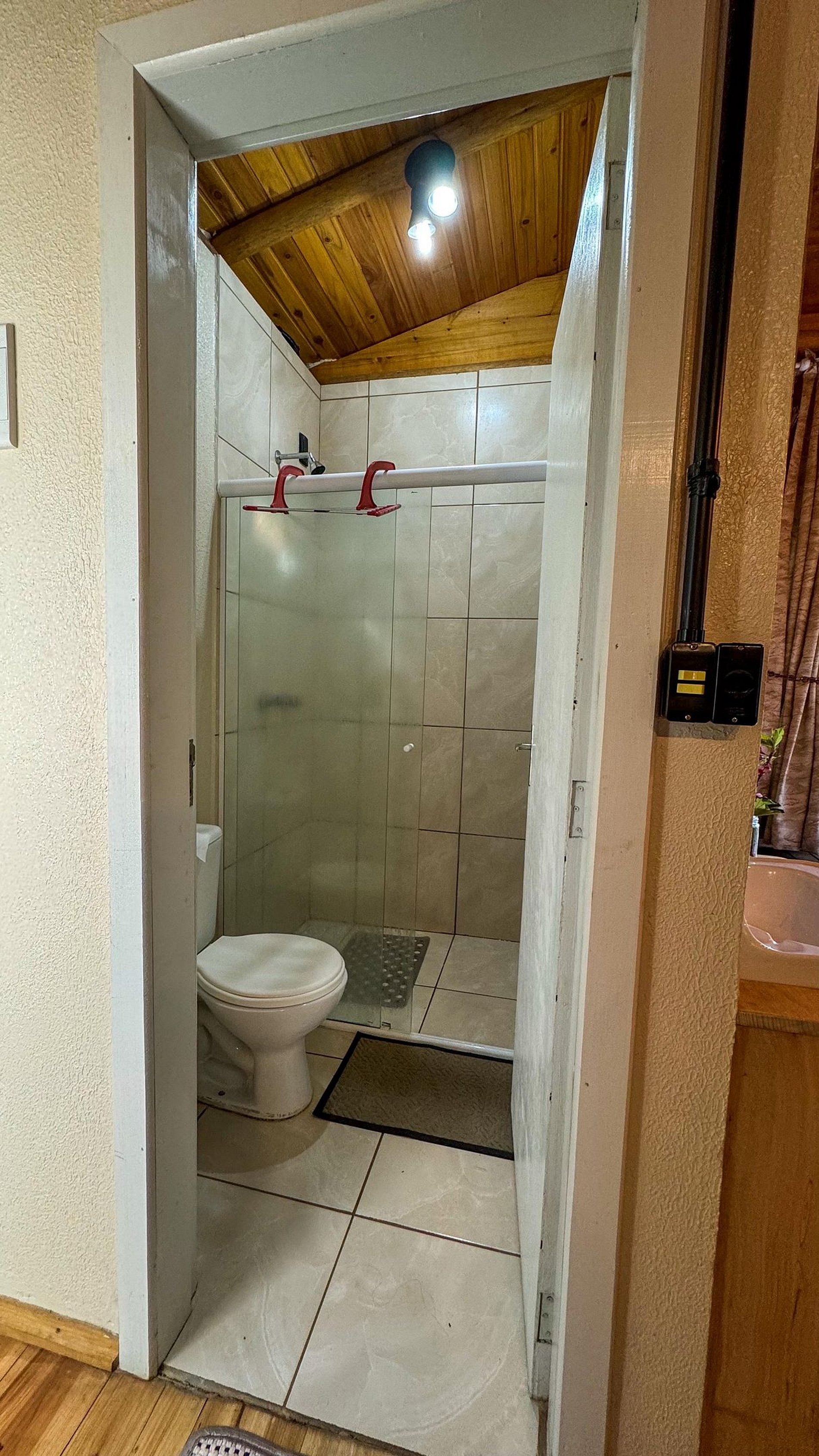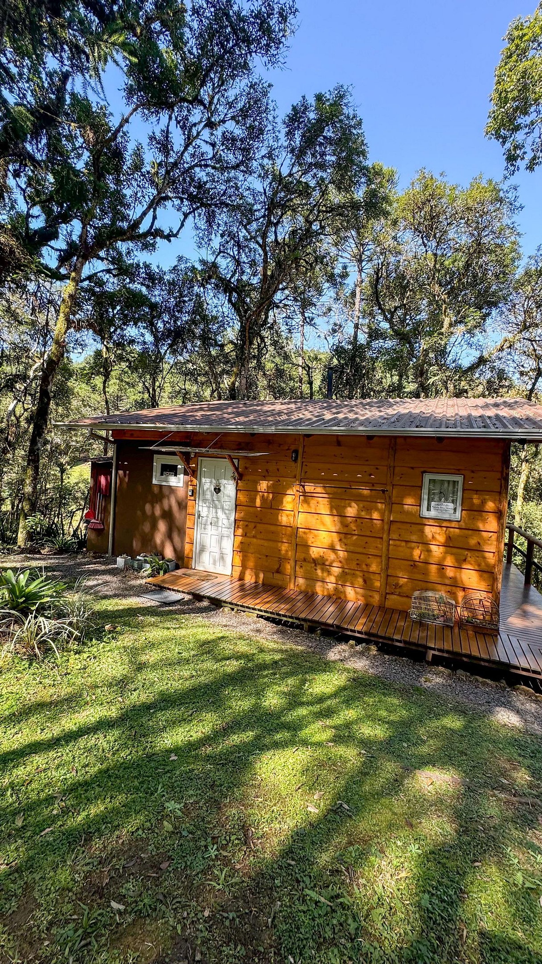 A cabana está pertinho de pontos turísticos e comércio de Campo Alegre, nosso Paraíso da Serra. Está localizada no Distrito de Bateias de Cima, área rural, a 20 km da sede do município. Imersa numa floresta de araucárias e mata nativa, tem tanque para pesca e pedalinho. Um lindo mirante para apreciar o pôr do sol convida para um piquenique, um vinho. Trilhas para caminhadas, balanço e bancos. Lareira de jardim e interna. Chuveiro com ducha a gás.