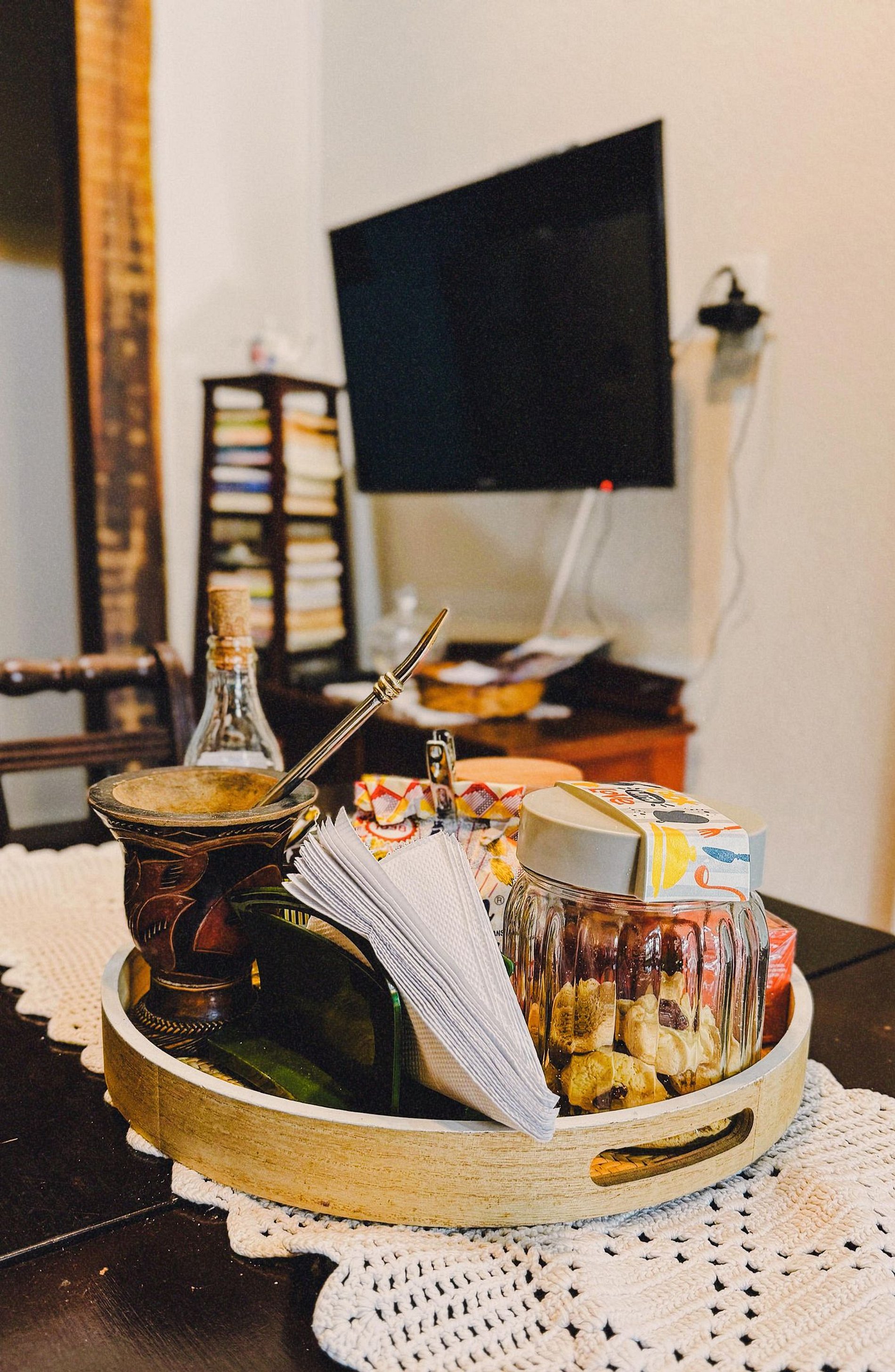 O hóspede tem disponível além do quarto sala/copa e varanda onde é servido o café da manhã. Disponível wifi, TV, sofás pra leitura e mesas para trabalho ou lazer.