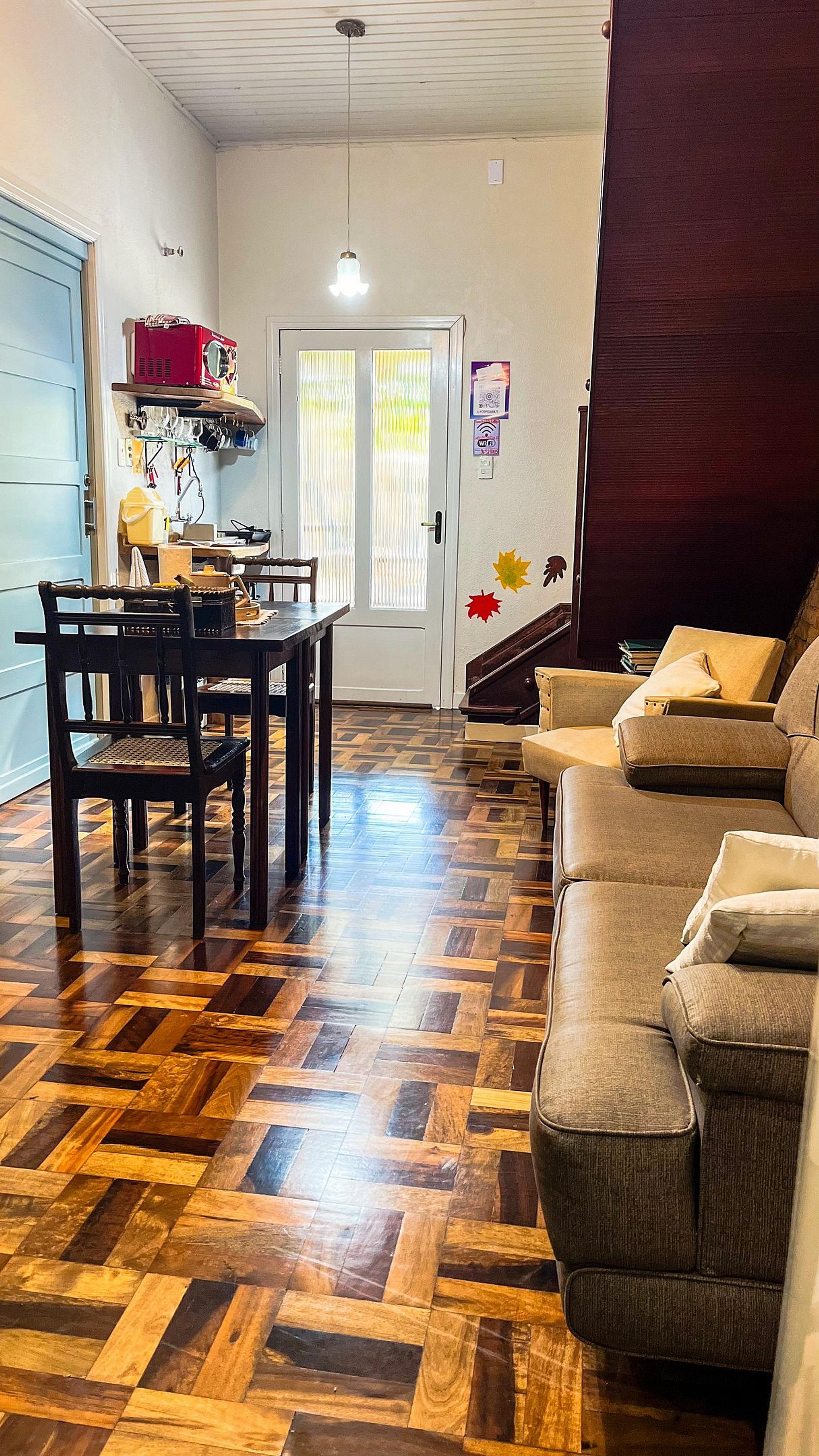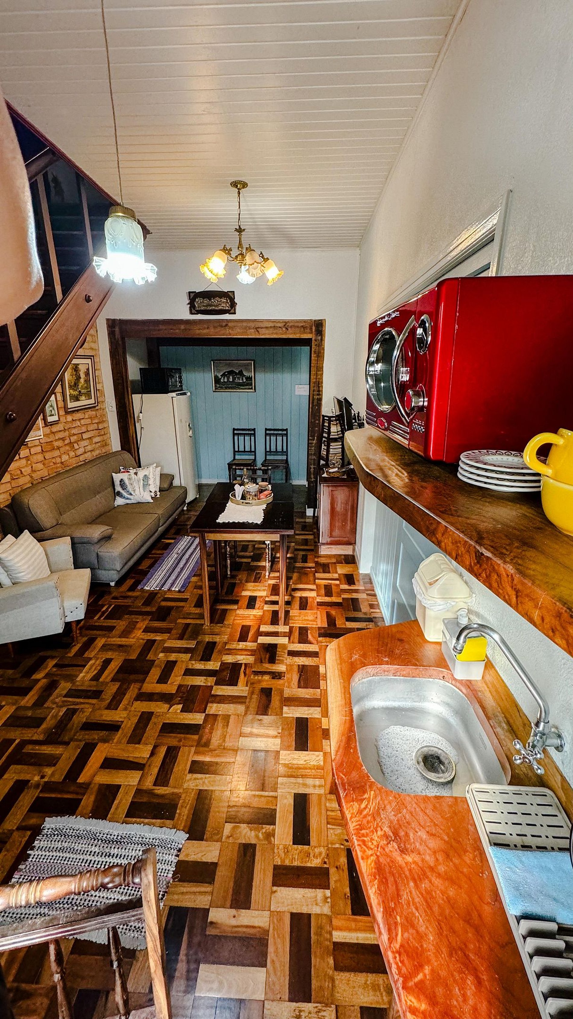 Oportunidade de estar com a família ou amigos neste lugar cheio de estilo. Casa construída pelo avô da proprietária, onde passaram 3 gerações da família Conte e Kuhnen. A hospedagem é no sótão aconchegante dessa casa. Cada quarto se beneficia de uma história e uma luz diferente. Três quartos da frente e lateral da casa são iluminados pelo sol da manhã. Na outra lateral com janelinha alta tem vista para o por do sol. O quarto dos fundos tem o sol da tarde e vista do paiol antigo e do quintal.