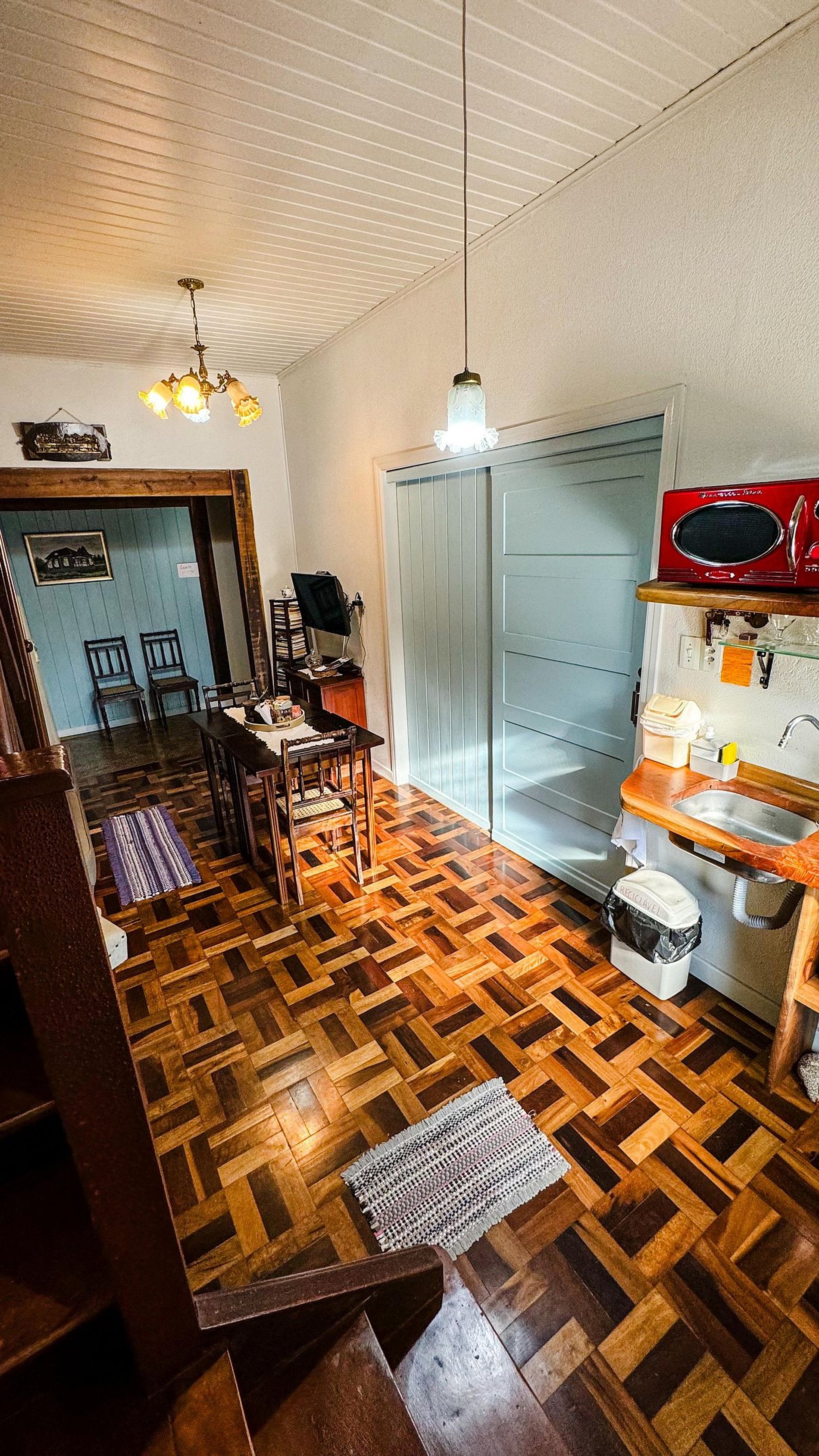 Logo ao chegar você já irá se dar conta que essa hospedagem é carregada de história e cultura local. Edificada nos anos 60 e preservada suas características embeleza a rua mais charmosa do bairro. Nas paredes, no mobiliário, nos quadros e detalhes estão a história do casal que recebe. Casa construída pelos avós da proprietária, aí passaram três gerações. Agora recuperando a vocação de pensão administrada pela avó Dona Nenê, os proprietários fazem questão de manter móveis da época. Algumas mudanças foram necessárias para ter bons banheiros, um deles preserva uma banheira de imersão. A alma de pensão ainda se sente já que são cinco quartos individuais e um banheiro compartilhado e estão no sótão da casa. Cada quarto se beneficia de uma história e uma luz diferente. Três quartos da frente e lateral da casa são iluminados pelo sol da manhã. Nos fundos, quartos com sol a tarde. Lavabo, copa, sala, cozinha, varanda estão no térreo. Uma suíte no térreo, tem banheiro próprio e sala privativa. Acesso independente do restante dos quartos e áreas compartilhadas,
