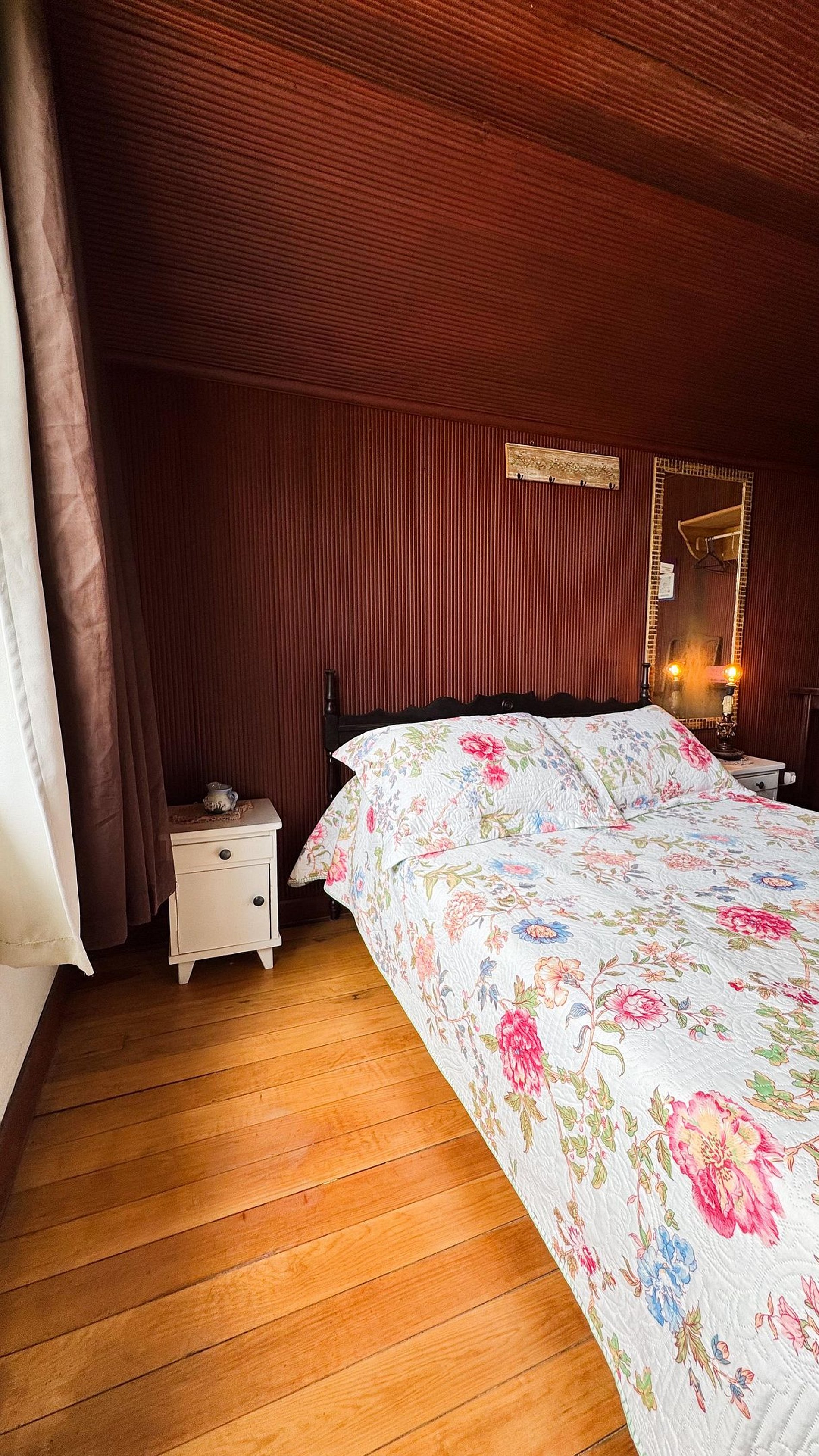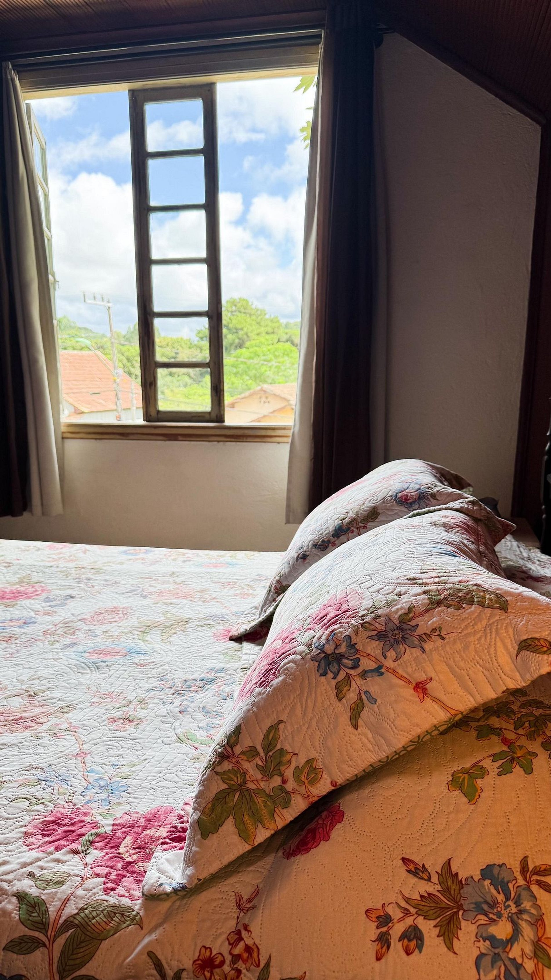 Logo ao chegar você já irá se dar conta que essa hospedagem é carregada de história e cultura nas paredes, mobiliário, quadros e detalhes. O banheiro é grande conta com ducha mas uma banheira de imersão foi mantida. São cinco quartos individuais e um banheiro compartilhado no sótão da casa. Lavabo, copa, sala, cozinha, varanda estão no térreo. Estacionamento gratuito. O Quarto frente 2, tem cama de casal e a janela para a frente da casa com sol da manhã.