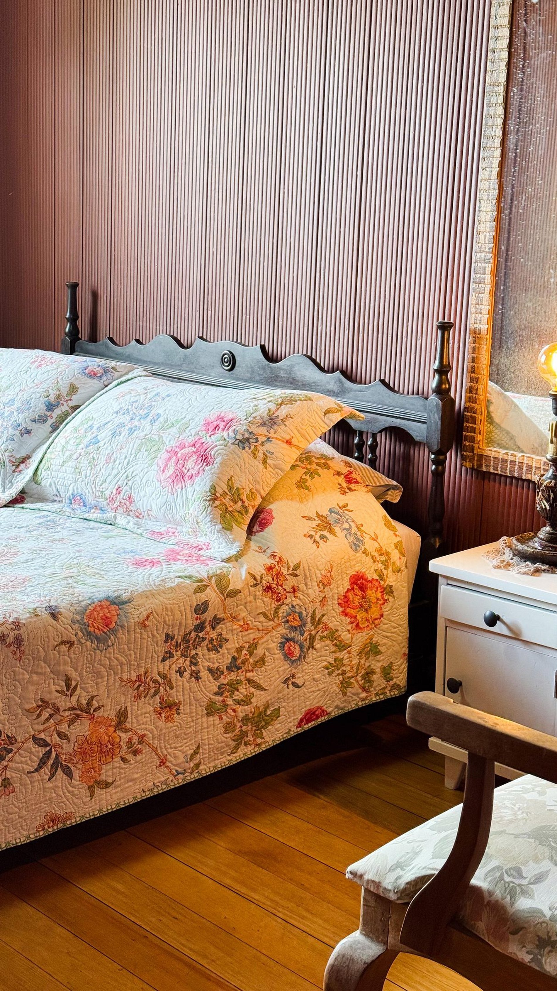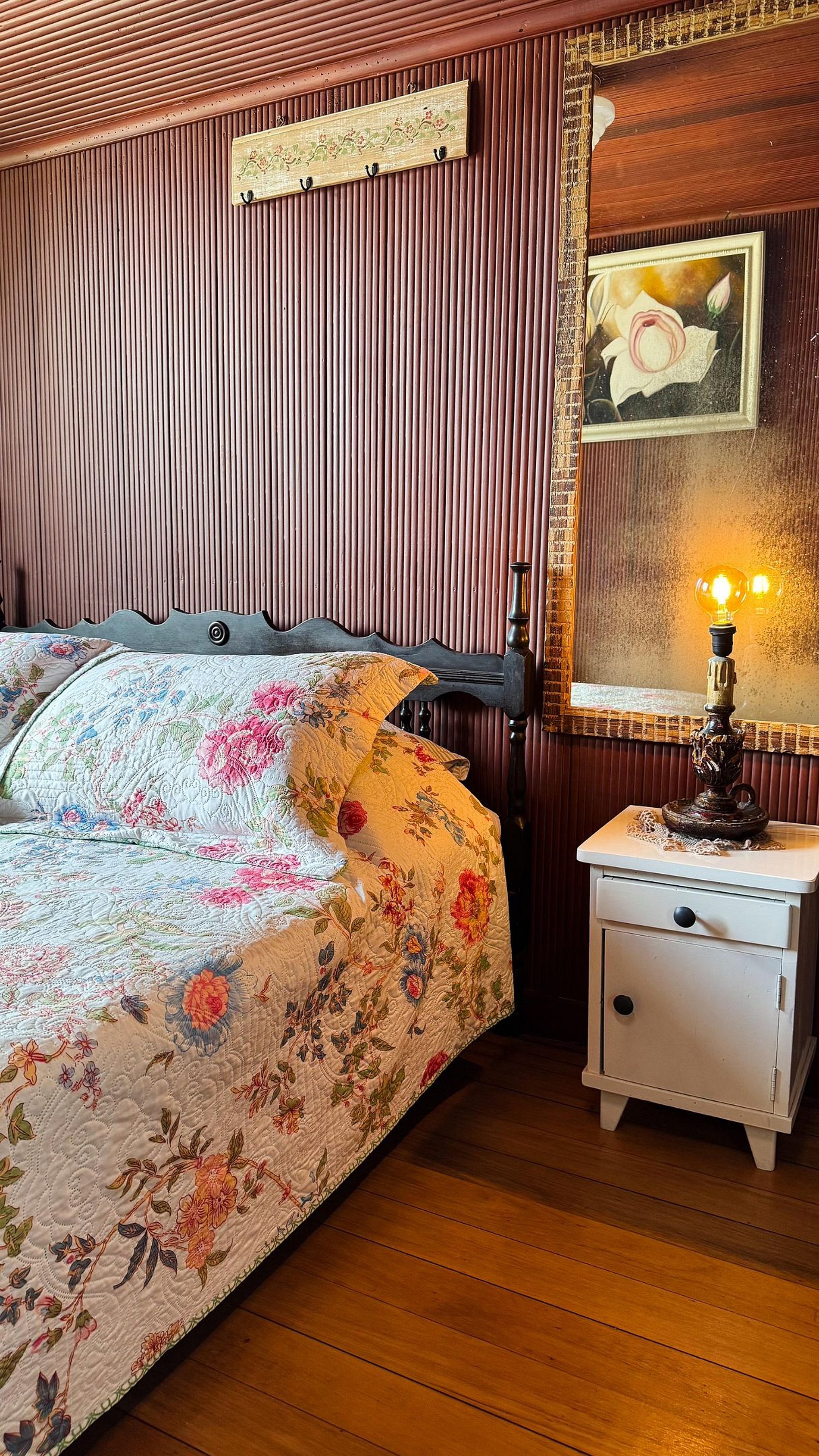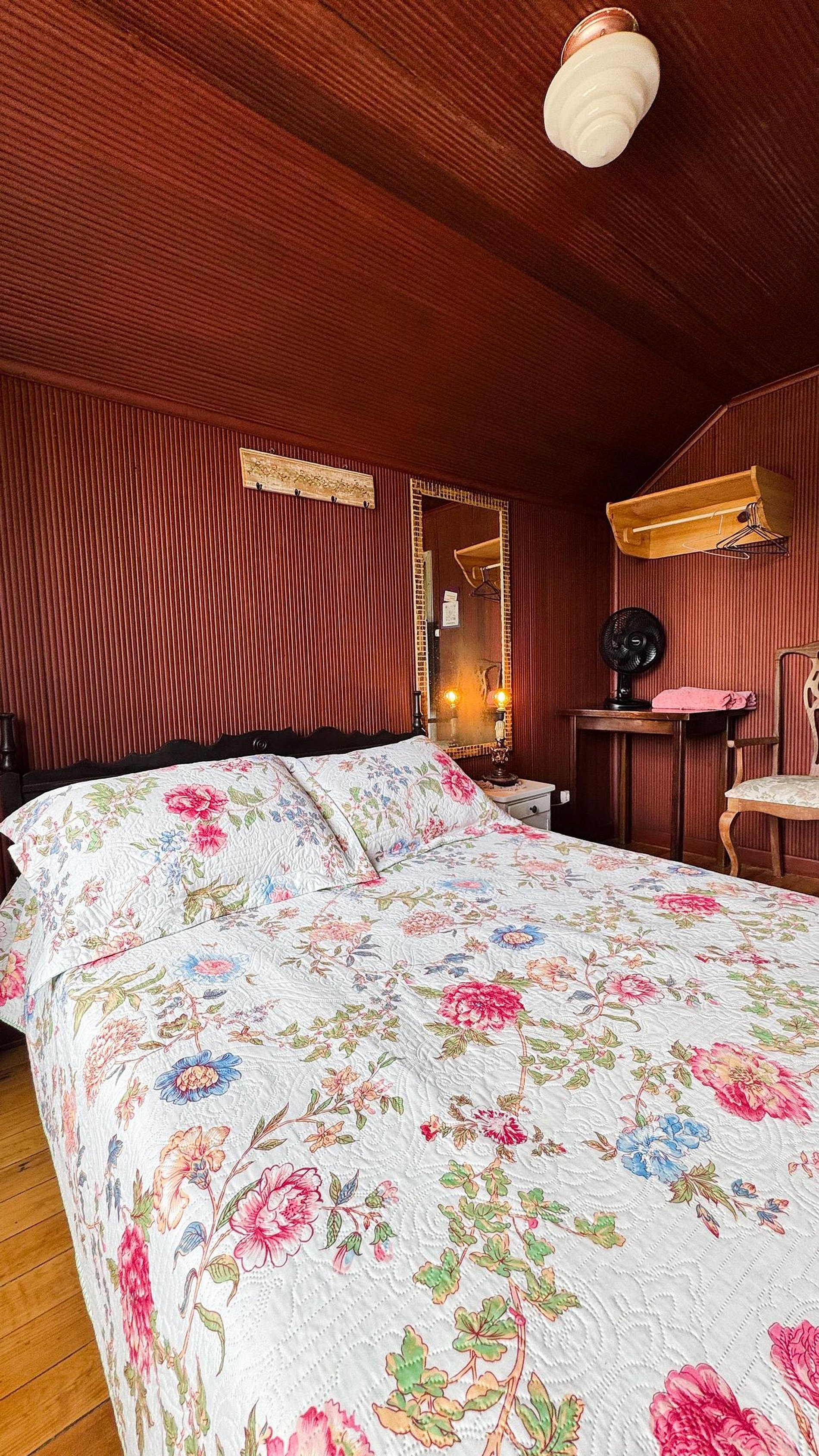 Logo ao chegar você já irá se dar conta que essa hospedagem é carregada de história e cultura nas paredes, mobiliário, quadros e detalhes. O banheiro é grande conta com ducha mas uma banheira de imersão foi mantida. São cinco quartos individuais e um banheiro compartilhado no sótão da casa. Lavabo, copa, sala, cozinha, varanda estão no térreo. Estacionamento gratuito. O Quarto frente 2, tem cama de casal e a janela para a frente da casa com sol da manhã.